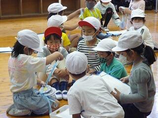 全員が集合した後、言葉集めの答えを発表しました。最後に2年生から1年生へ朝顔の種のプレゼントがありました。2年生は1年生の面倒をしっかり見ることができ、1年生は2年生の話をよく聞いて行動することができました。とても立派な「学校探検隊」でした。