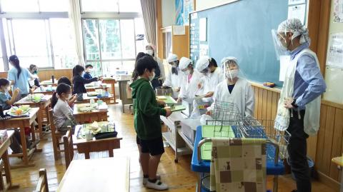 今後も、衛生面に気を付けながら、安全な給食の配膳に努めます。