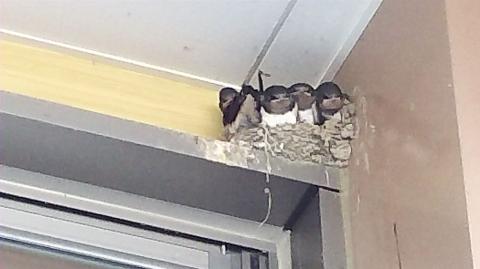 最後に、学校の軒下に巣を作って成長した、まもなく巣立つツバメの様子を見てください。