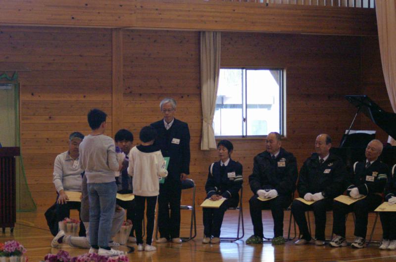 児童代表挨拶に始まり、校長の話、感謝の手紙とプレゼントの贈呈、ボランティア代表の方のお話、全校児童による歌のプレゼント、参加者全員で校歌を歌うという流れで会は行われました。