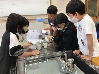 4月19日(金)、5年生は、家庭科の授業でお茶の入れ方を学び、実習していました。お湯を沸かし、急須に茶葉を入れ、お湯を入れて、頃合いを見て湯のみにお茶を注ぎます。ごちそうになりましたが、とてもおいしかったです。ぜひ、家でも実践してほしいと思います。