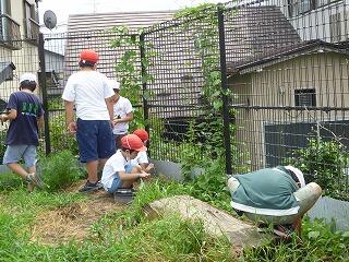 猛暑日が続き、熱中症警戒指数を超えてしまっていたため、先週は室内で過ごす日が続いていました。しかし、今日は何とか外遊びができるまで気温が下がり、外で元気に遊ぶ児童がたくさんいました。遊具を使って遊んだり、虫を求めて畑の周辺を探したりしていました。なかにはカマキリを見つけて、それを得意そうに見せてくれる児童もいました。元気溌溂な姿を見ると、こちらまで元気をもらい、暑さを忘れてしまいます。