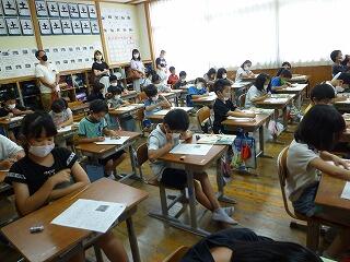 1年生の教室では、子供たちが集中して学習に取り組んでいました。