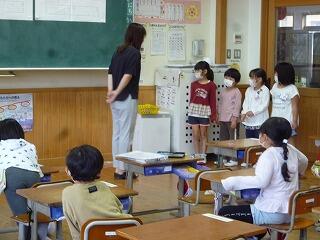 爽やかな朝を迎え、各教室を廻ると朝の会が行われていました。日直の児童が司会を務め、自分たちで会を進めていました。
