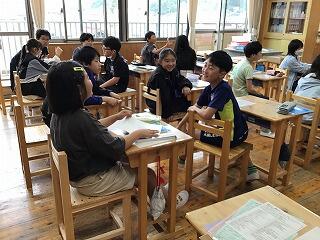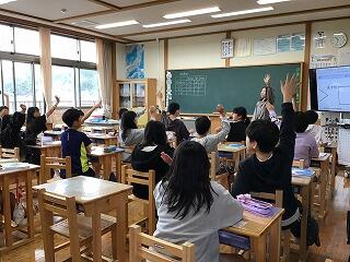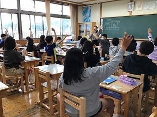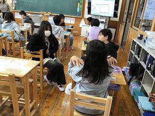 4月30日(火)、6年生の教室では、算数で線対称な図形の学習をしていました。軸の数が何本あるかを皆で話し合っていました。なぜそう思うのか、理由を交えて相手にわかるように説明していました。説明する力も向上しているようです。