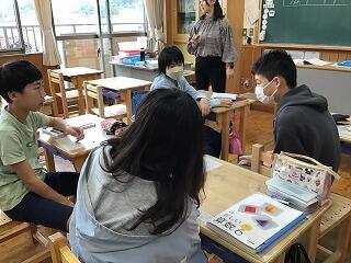 5月1日(水)、1年生の教室では、国語の授業をしていました。「よく聞いて話をしよう。」という目標で、友だちとペアになり、「好きな遊び」を質問し合っていました。楽しそうに会話をしていました。友だちのことを、よく知ることができたようです。