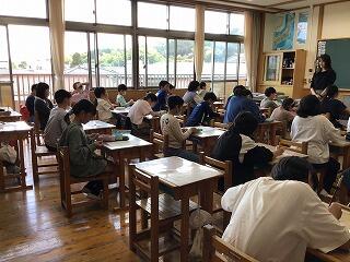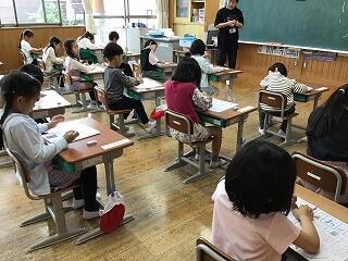 4月30日(火)、1年生の教室では、国語の授業でひらがなの書き方を勉強していました。連休明けにもかかわらず、1年生も、落ちついて授業に取り組み、丁寧に文字を書く練習をしていました。