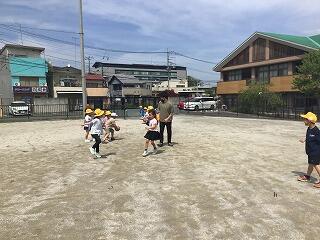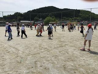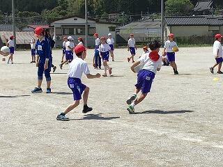 4月26日(金)、5年生は、校庭で体育をしていました。ボールを使いながら、走る運動をしていました。捕まらないようにするにはどうしたらよいかを考えながら、ダッシュの仕方を工夫していました。とても楽しそうでした。