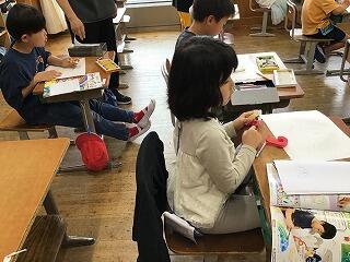 4月30日(火)、2年生の教室では、図工の授業をしていました。白いクレパスで画用紙に絵を描き、次の時間に、絵の具で彩色するそうです。「今は、真っ白だけど、絵の具で塗ったら、きれいになるの。」と話していました。どんな色を使って彩色するのか、どんな作品に仕上がるのか、今から楽しみです。きっと、個性あふれる素敵な作品に仕上がることでしょう。