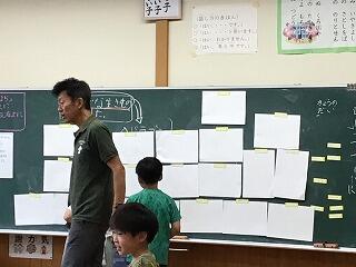 5年生の教室では、係から、クラスのみんなに連絡をしていました。アンケートを作り、皆の意見を聞いていろいろな企画を考えたいと伝えていました。締め切り日や提出先をしっかりと伝え、自主的に活動していました。どんな企画が出てくるのかとても楽しみです。