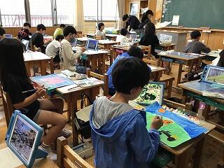 4月30日(火)、5年生の教室では、図工の学習をしていました。春の風景画を絵の具で着色していました。色を混ぜながら、表したい色を見つけ出し、丁寧に着色していました。素敵な作品が完成しそうです。