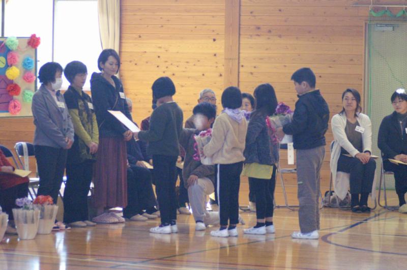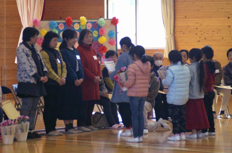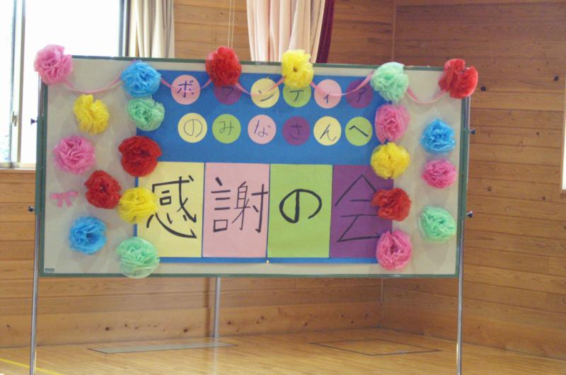 児童代表挨拶に始まり、校長の話、感謝の手紙とプレゼントの贈呈、ボランティア代表の方のお話、全校児童による歌のプレゼント、参加者全員で校歌を歌うという流れで会は行われました。
