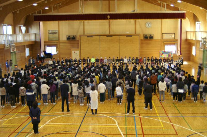 最後に、全校児童で「ビリーブ」を合唱しました。いつものように心を一つにした、きれいな歌声が体育館中に響き渡りました。