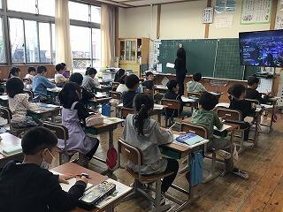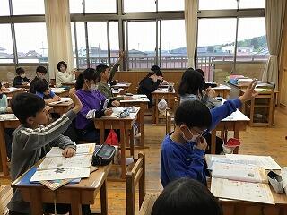 4月23日(火)、5年生の教室では、外国語の授業をしていました。ALTの英語での質問を聞き取り、正しい答えを教科書の中から探していました。集中して質問を聞き、内容を聞き取って、的確に答えていました。見るたびに感心します。