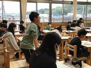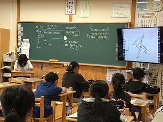 4月23日(火)、6年生の教室では、算数の授業をしていました。点対称な図形の学習です。タブレットを使いながら、自分が見つけた図形の特徴について、相手にわかるように説明をしていました。