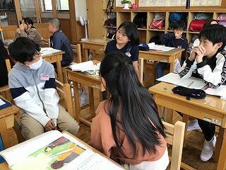 4月22日(月)、6年生の教室では、国語の授業をしていました。二人の登場人物の気持ちを対比させながら、二人の視点で、文章が書かれている良さを考えていました。グループで意見を出し合った後、全体で意見を共有し、友だちの考えを聞いて、自分では気づかなかったことにも、気づくことができた様子でした。