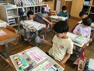 4月15日(月)、3年生の教室では、図工で絵の具の表現方法について学習をしていました。水分量の違いで、色合いが変化することを学び、実際に試していました。自分で試しながら、水の交ぜ具合を調整し、自分の表したい色合いを探していました。思った通りの色合いが見つかると、宝物を発見したように歓声をあげていました。
