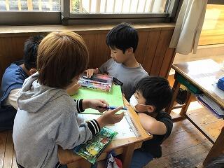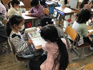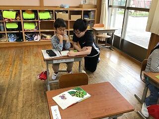4月16日(火)、1年生の教室では、今日も6年生が、1年生と一緒に朝の活動をしていました。名札を付けたり、ランドセルをしまったりと、1年生が自分でできることがどんどん増えていました。朝の準備が早く終わると、好きな本を選んで、読書をしていました。6年生が1年生に寄り添いながら、一緒に本を開いている様子は、なんともほのぼのとしています。6年生と1年生の仲も、日に日に深まっている様子です。