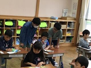 2年生の教室では、授業の初めに、次の時間の準備について約束の確認をしていました。自分たちが、どう行動すればよいか自分たちで考えていました。隣の教室では、1学期のめあてを記入していました。それぞれが自分のめあてを決め、良いスタートが切れたようです。