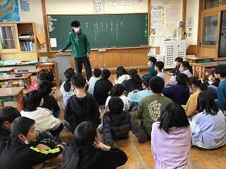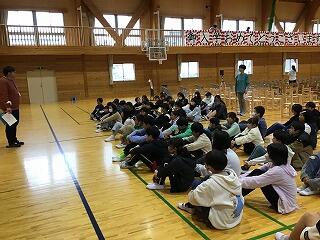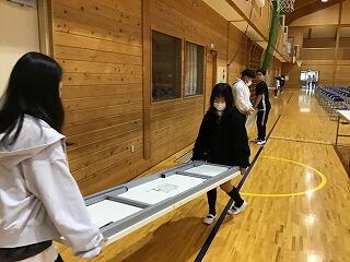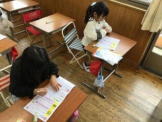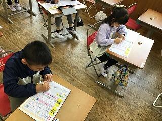 2年生:入学式準備で椅子を体育館に運び、パイプ椅子を使用しての勉強でしたが、新しい漢字を学習し、丁寧に練習していました。