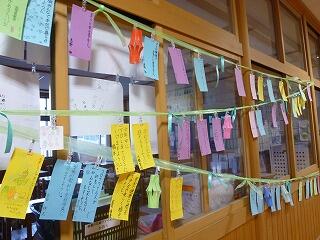 また、廊下には七夕飾りに短冊が下げられていました。6年生も、願い事を短冊に書いていました。