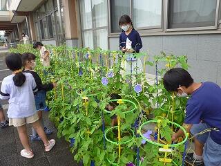 3年生のホウセンカも色とりどりに、美しく咲いています。例年より、育ちがいいとのこと。2年生の作物も豊作のようです。丹精込めて世話をしているからでしょう。
