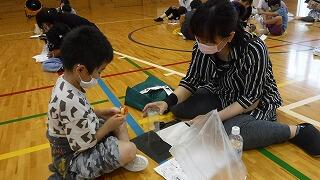 学年委員さんが作り方の手順を分かり易く書いた紙を用意してくださり、それを見ながら親子で万華鏡づくりに取り組みました。身近な材料や道具を使って、手作りの万華鏡が出来上がり、子どもたちは嬉しそうにのぞき込んでいました。雨の中でのうっとうしい日でしたが、親子での活動は、ゆったりとした時間が流れ、心癒される温かな時間になったことと思います。