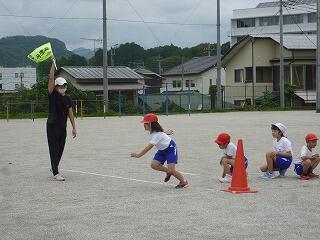 運動会と同じ距離を走り、タイムをとりました。どの児童も、一秒でも速くゴールしようと真剣に走っていました。