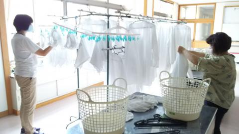 先週末に、感染症予防対策についてお知らせしました。今日はそのうちで、給食の白衣について、学校での管理の様子をお知らせします。