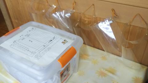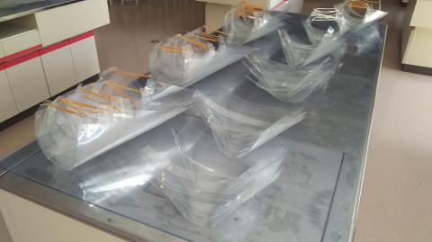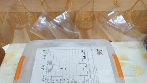 コロナ対策 外国語活動で使う児童用フェイスシールドの作成中