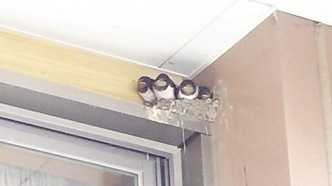 最後に、学校の軒下に巣を作って成長した、まもなく巣立つツバメの様子を見てください。