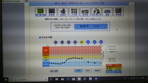 昼間は天気が良く、暑いくらいになります。熱中症が気になりますので、環境省の熱中症情報をホームページで見ながら、エアコンの使用を指示したり、児童に注意を喚起したりします。