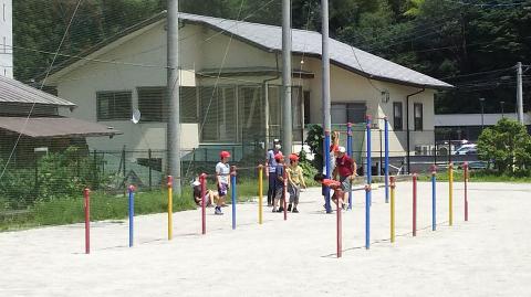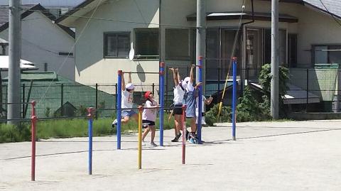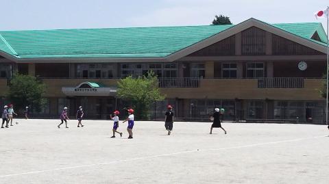 暑い中でも、子ども達は、帽子をかぶって元気に外遊びをしています。学校では、熱中症情報を見ながら、適宜エアコンを使用して、体調管理に努めています。