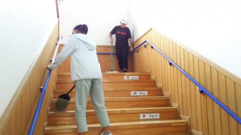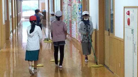 今日は、子ども達の清掃の様子をお知らせします。通常は、縦割り班で清掃を行うのですが、現在、コロナウィルス感染予防のため、学級ごとの清掃となっています。高学年の児童が、いくつかの班に別れて、校内の数カ所を清掃しています。