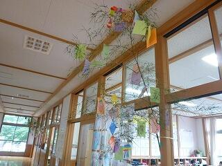 また、1,2年生の廊下には、七夕がきれいに飾られ、一人一人の願いが込められた短冊が色とりどりに下がっていました。願いが叶うといいですね!