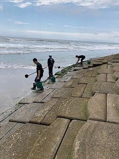 奇跡的に雨が上がり、薄日もさす中で、砂浜活動満喫中です。