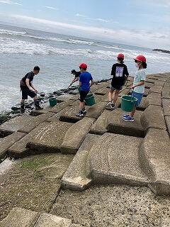 午後になると降っていた雨もやみ、砂浜活動、砂の造形を行って、子どもたちはめいっぱいエンジョイしていました。