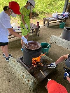 午前中の塩づくりでは、暑さに耐えながら班で協力して取り組み、どの班も貴重な塩を作ることができました。