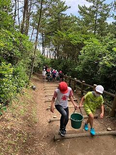 塩作り第一弾 教員が気合で海水を汲み、子どもたちが根性で運びます!