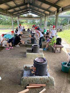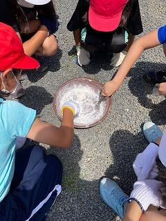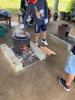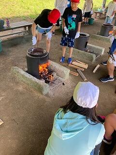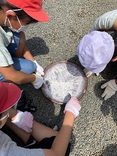 午前中の塩づくりでは、暑さに耐えながら班で協力して取り組み、どの班も貴重な塩を作ることができました。