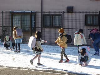 今朝は、思いがけず雪が積もっていてびっくりしました。登校してきた子どもたちは、雪を固めて可愛い雪だるまを作ったり、投げたりして楽しんでいました。