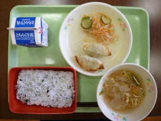 今日は、さつきランチでした。栃木県産の豚肉とニラを使った餃子、栃木県の特産物である干ぴょうを使った卵汁が出ました。また、サラダには栃木県産のもやしが使われていて、酢を使ってさっぱりとした味付けになっていました。栃木県産の美味しいものを食べて、暑い夏を乗り切っていきたいですね。
