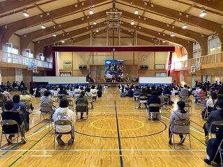 まずは、音楽部による「大切なもの」の合唱が披露されました。これは、鹿沼市小中学校合同音楽会で歌った曲です。体育館中に響き渡るきれいな歌声に、全校生が耳を澄まして聴きいっていました。