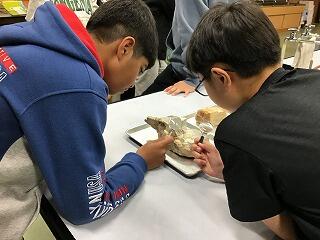 12月6日(金)、理科室では、6年生が地層や化石の様子を調べていました。子どもたちは、虫めがねを使って熱心に観察をしていました。