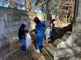 12月10日(火)、5年生は今日、「鹿沼城をきれいにし隊」に入隊し、文化財を保護するボランティア活動に取り組みました。5年生は総合的な学習の時間に、鹿沼市の歴史や文化財について探求活動を行っています。その中で、史談会の方にお世話になり調査活動を行ってきました。子どもたちは、史談会の方々が「鹿沼城をきれいにし隊」というボランティア組織を結成し文化財の保護活動を行っていることを知り、その活動に参加することにしたのです。今日は、その名のとおり、鹿沼城跡地の御殿山を清掃する活動に取り組みました。自分たちの頑張りできれいになった御殿山の遊歩道を見返し、「やってよかった。」そんな思いを持つことができたようです。ボランティアの皆さんが、どのような気持ちでこの活動を行っているのかも知ることができました。