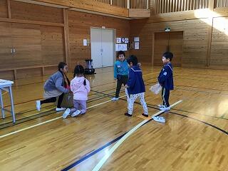 12月19日(木)、1年生は3回目の保育園との交流がありました。1,2回目の交流でうまくいかなかったことを改善して、パワーアップさせました。体育館に園児たちの楽しそうな声が響いていました。小学校では1番下の1年生が、園児たちのお世話をたくさんしていて、とても頼もしく見えました。