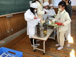 今日は、日頃中央小学校に給食を提供してくださっている粟野調理場の方々が、中央小の給食の様子を見に来てくださいました。給食の準備の様子や会食の様子、片付けの様子などを参観しながら、今日の給食についてのクイズを出題したり、給食について児童の意見を聞いたりしてくださいました。準備や片付けの手際の良さや、配膳の仕方、会食の様子などたくさんお褒めの言葉をいただきました。粟野調理場の皆様、いつもおいしい給食をありがとうございます。