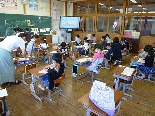 終業式が終わり、各教室では、夏休みの生活や学習の課題について確認したり、お楽しみ会をして楽しんだり、通信票を手渡してもらったりしました。