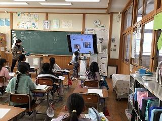 3年生は、理科の学習で、電気を通すものと通さないものを調べた結果を発表していました。自分たちで予想を立てて反応を実際に調べ、実験の結果からどんなものが電気を通すのか考えていました。はっきりしないものについては、検証実験を行いながら明らかにしていました。さすが3年生。電気を通すものの共通点を見つけられたようです。