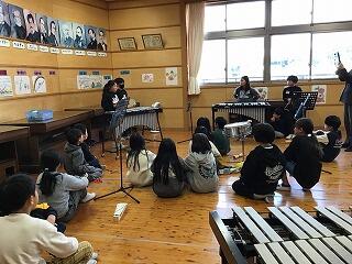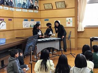 4年生は、音楽の時間に、楽器を組み合わせて演奏する方法を考えていました。タブレットで好きな楽器を3種類選び、それぞれの楽器が演奏するリズムを考えます。3人グループになってそれぞれ担当する楽器を決め、リズムを考えていました。考えがまとまったら実際に演奏してみます。演奏しながら修正を加える班もありました。皆楽しみながら様々な楽器に親しみ、演奏の仕方を工夫していました。